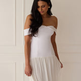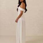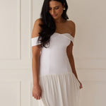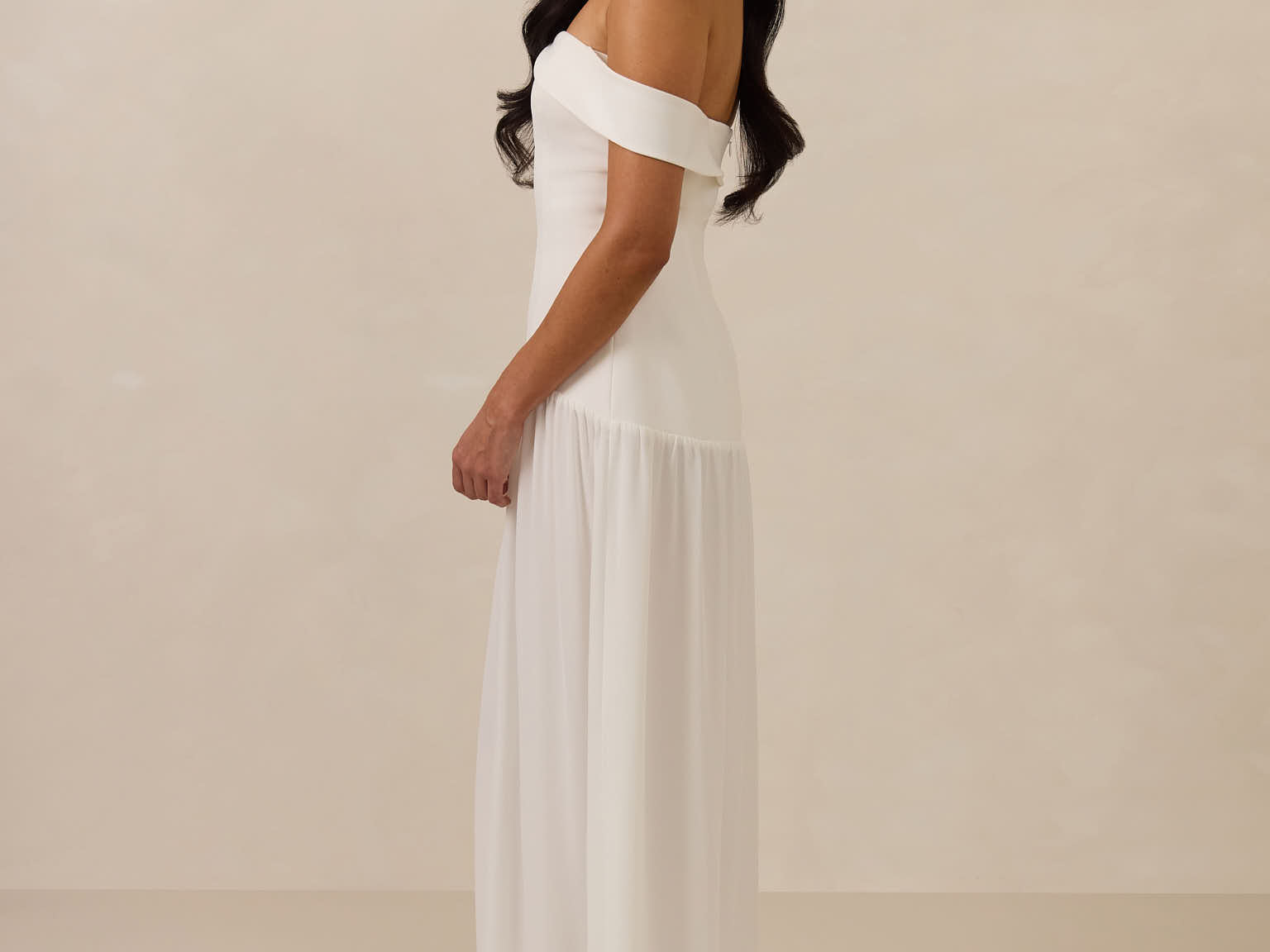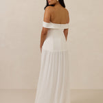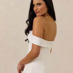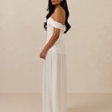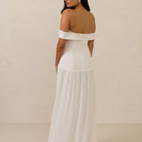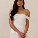 Turn heads in this breathtaking dress, featuring a romantic off-the-shoulder sweetheart neckline that elegantly frames your collarbones. The sleek, structured bodice flows seamlessly into a dropped waist and a pleated, airy skirt, creating a look that’s effortlessly sophisticated and perfectly made for dancing the night away.