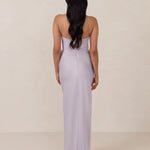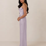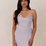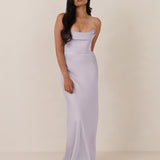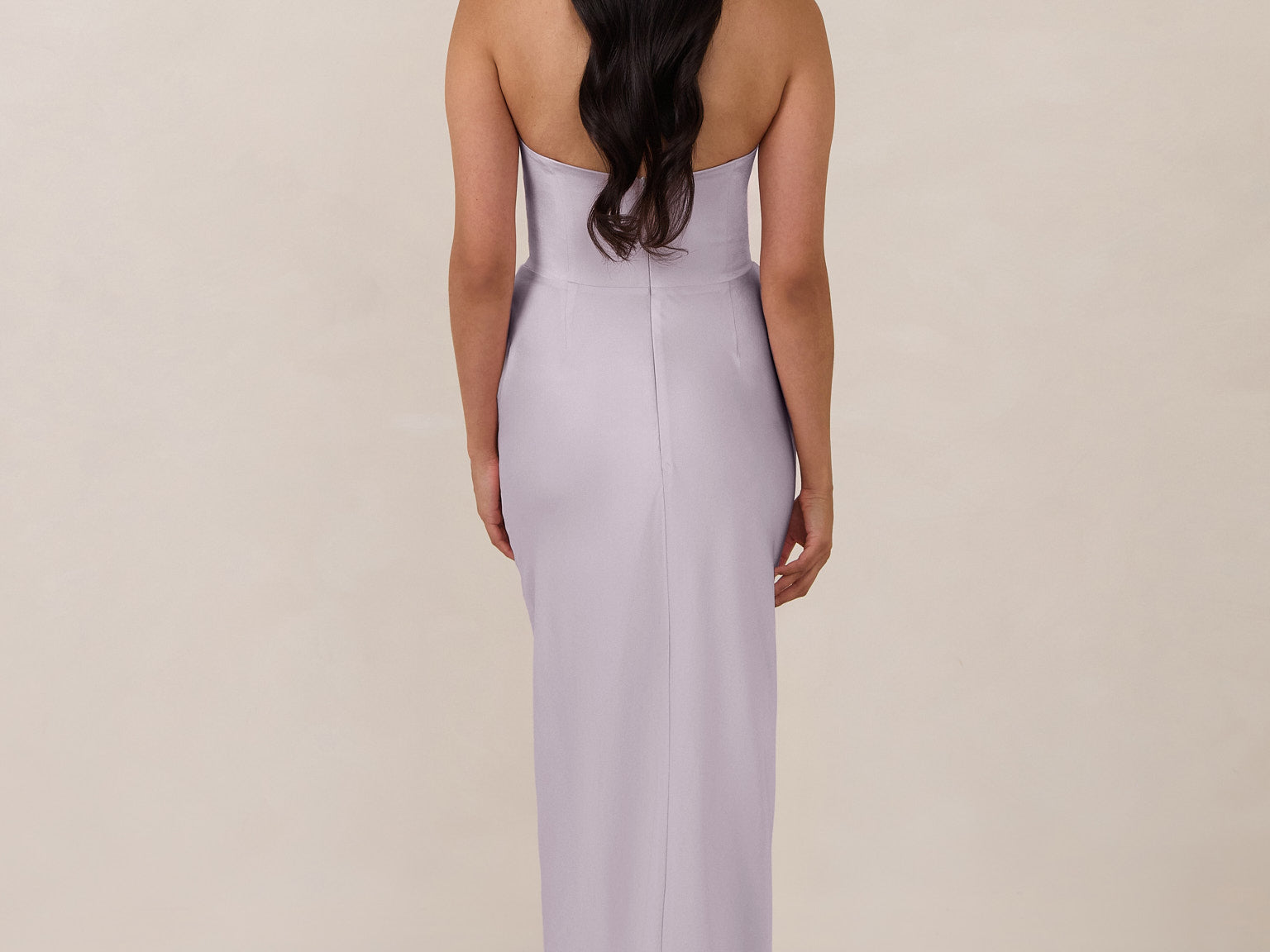 An elegant strapless design with a modern edge, this dress features an exaggerated pointed neckline and a boned bodice for a structured, flattering fit. The bias-cut skirt creates a smooth, elongating silhouette, while the full-length design makes it perfect for galas and formal occasions.