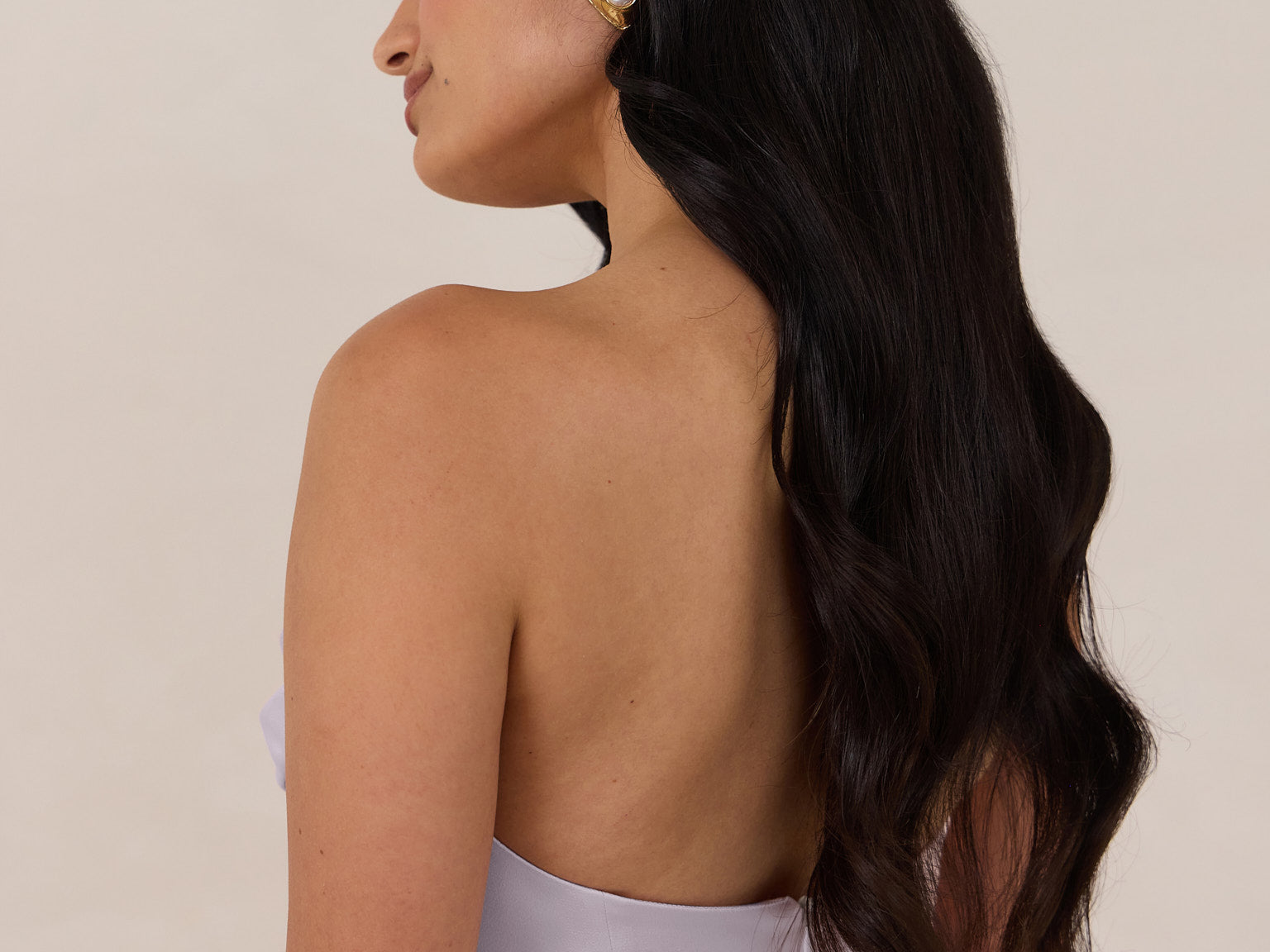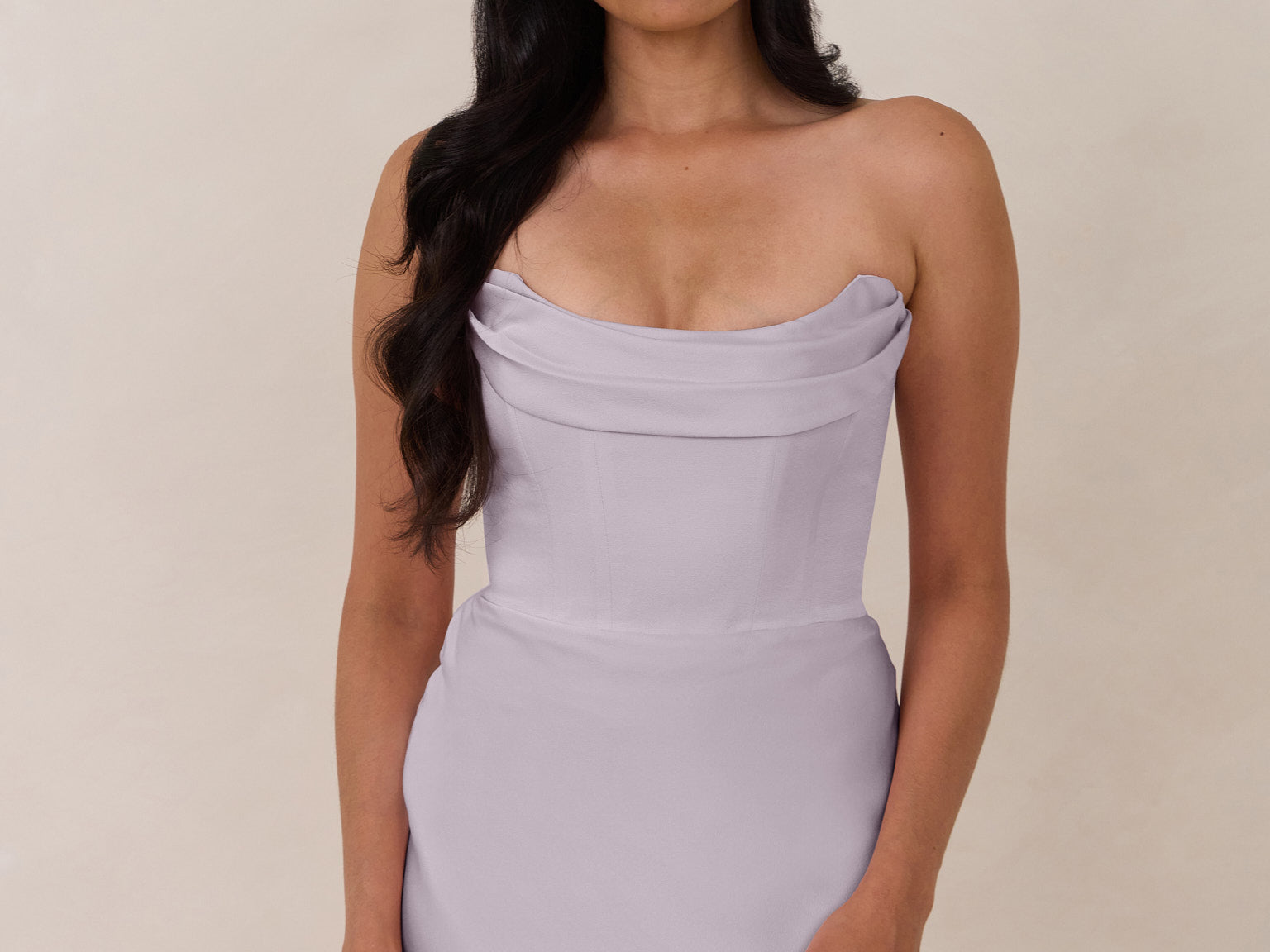- Strapless with exaggerated point detail