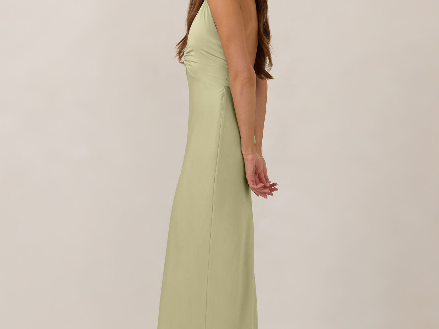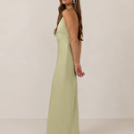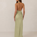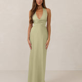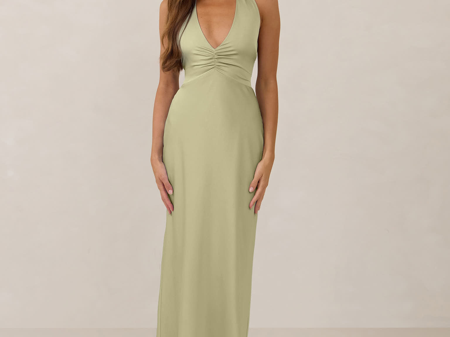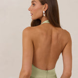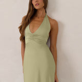 The perfect balance between bold and refined, this satin halter dress is designed to turn heads with quiet confidence. Featuring a plunging halter neckline that highlights the neck and collarbone, it's finished with a cinched detail at the bust to enhance shape and create a beautifully flattering silhouette.