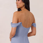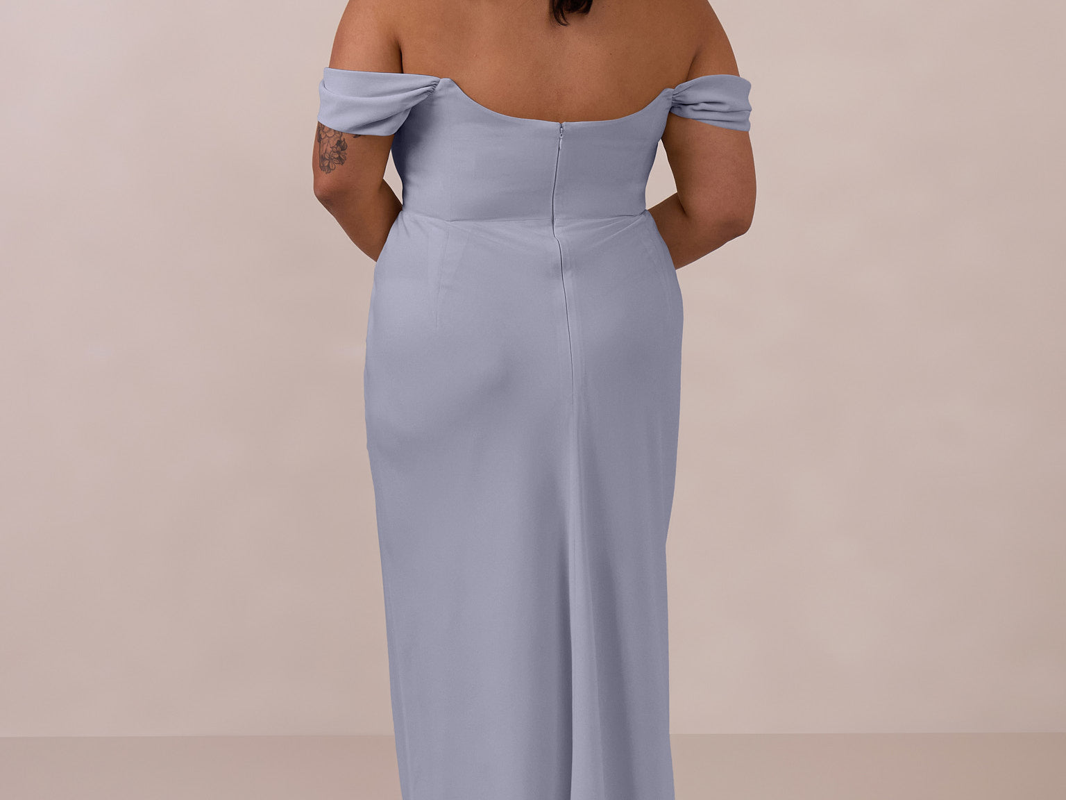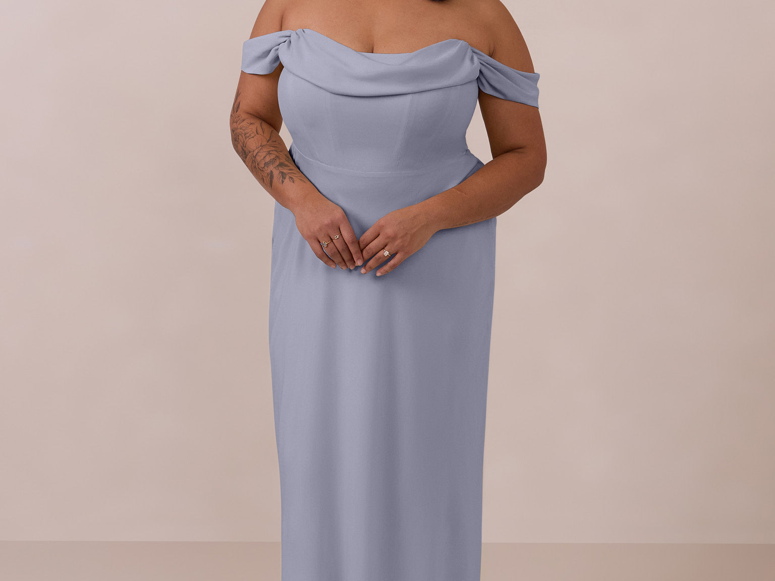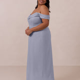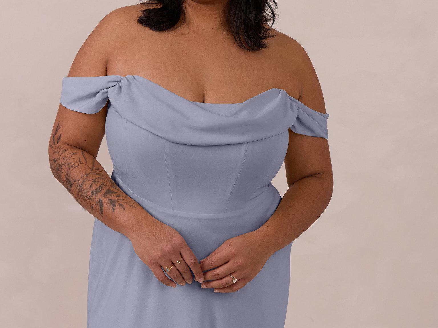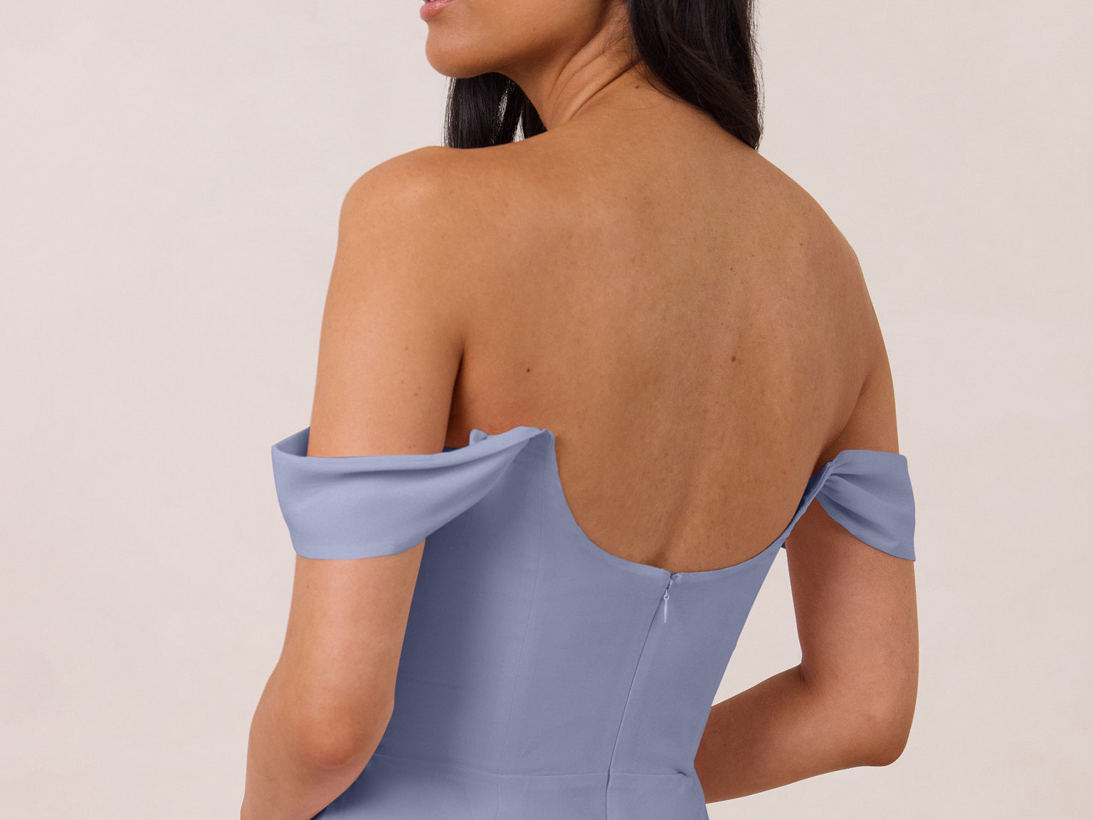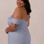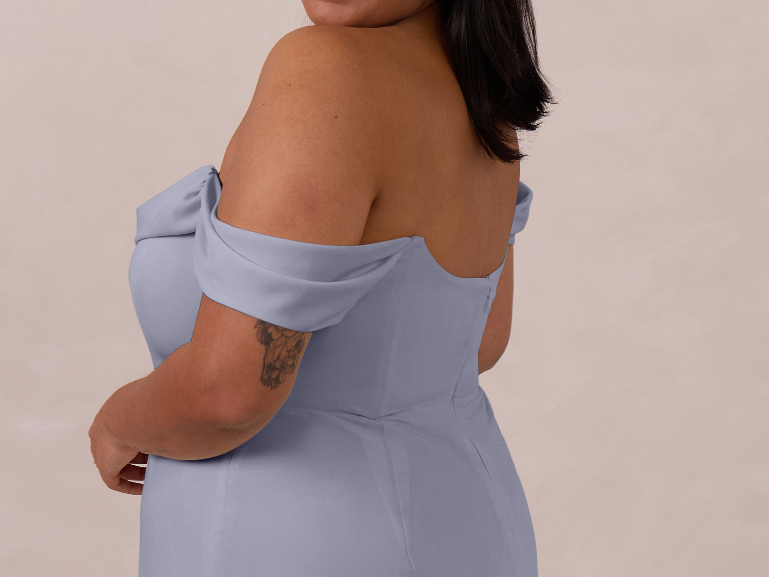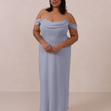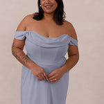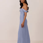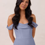 The Sutton Dress is the definition of effortless elegance. Designed with a soft draped chiffon neckline and delicate off-the-shoulder sleeves, it strikes the perfect balance between romance and refinement.