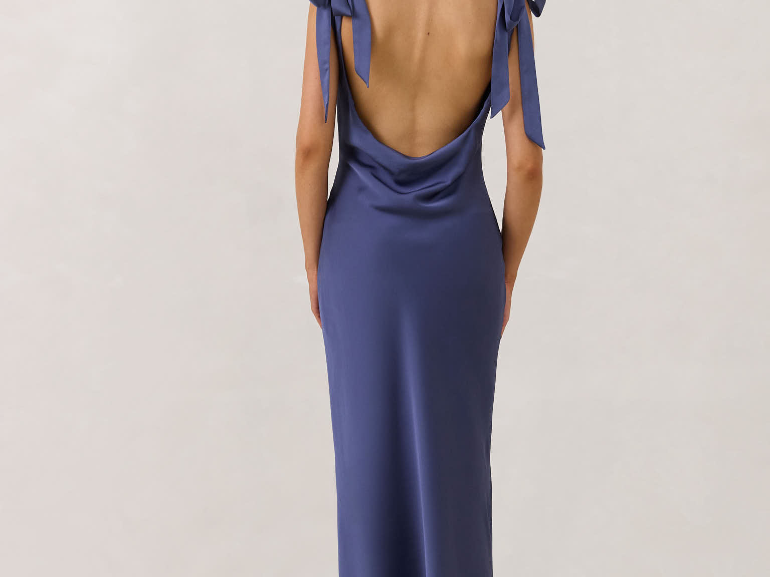 A true classic beauty - the sleek and simple front paired with the striking open, cowl back and tie straps is a match made in heaven.