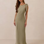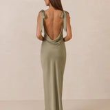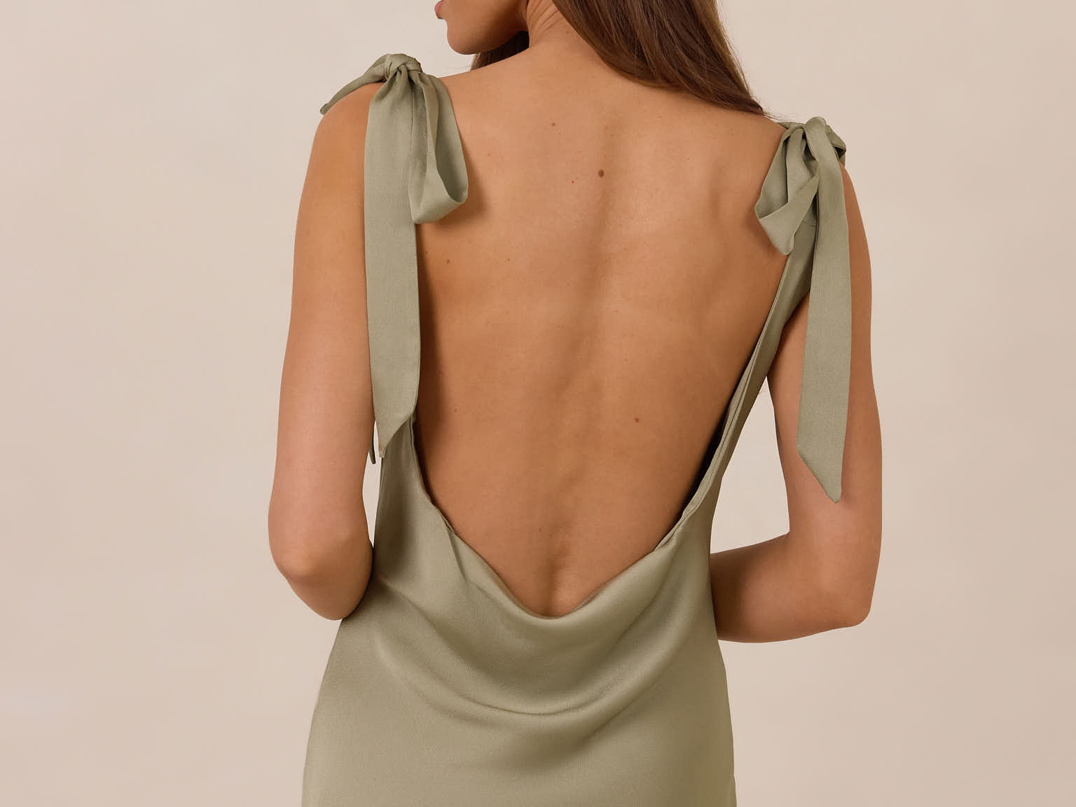 A true classic beauty - the sleek and simple front paired with the striking open, cowl back and tie straps is a match made in heaven.