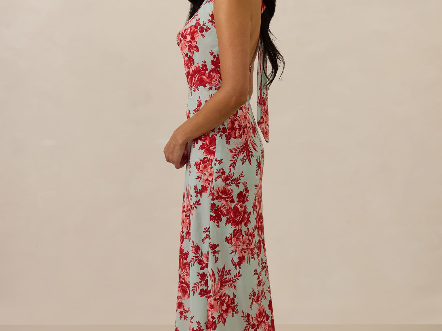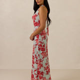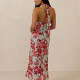 Effortlessly chic cowl neck design crafted from soft chiffon. Featuring a bias-cut tea length skirt, this dress offers a flattering, flowing silhouette that moves with ease. Perfect for any occasion.