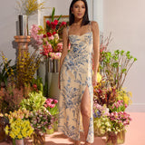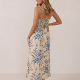 The Willow Dress is effortless and romantic, designed with delicate tie straps. The fitted shape through the waist gives way to a soft, easy fitting skirt, complete with a front slit.