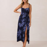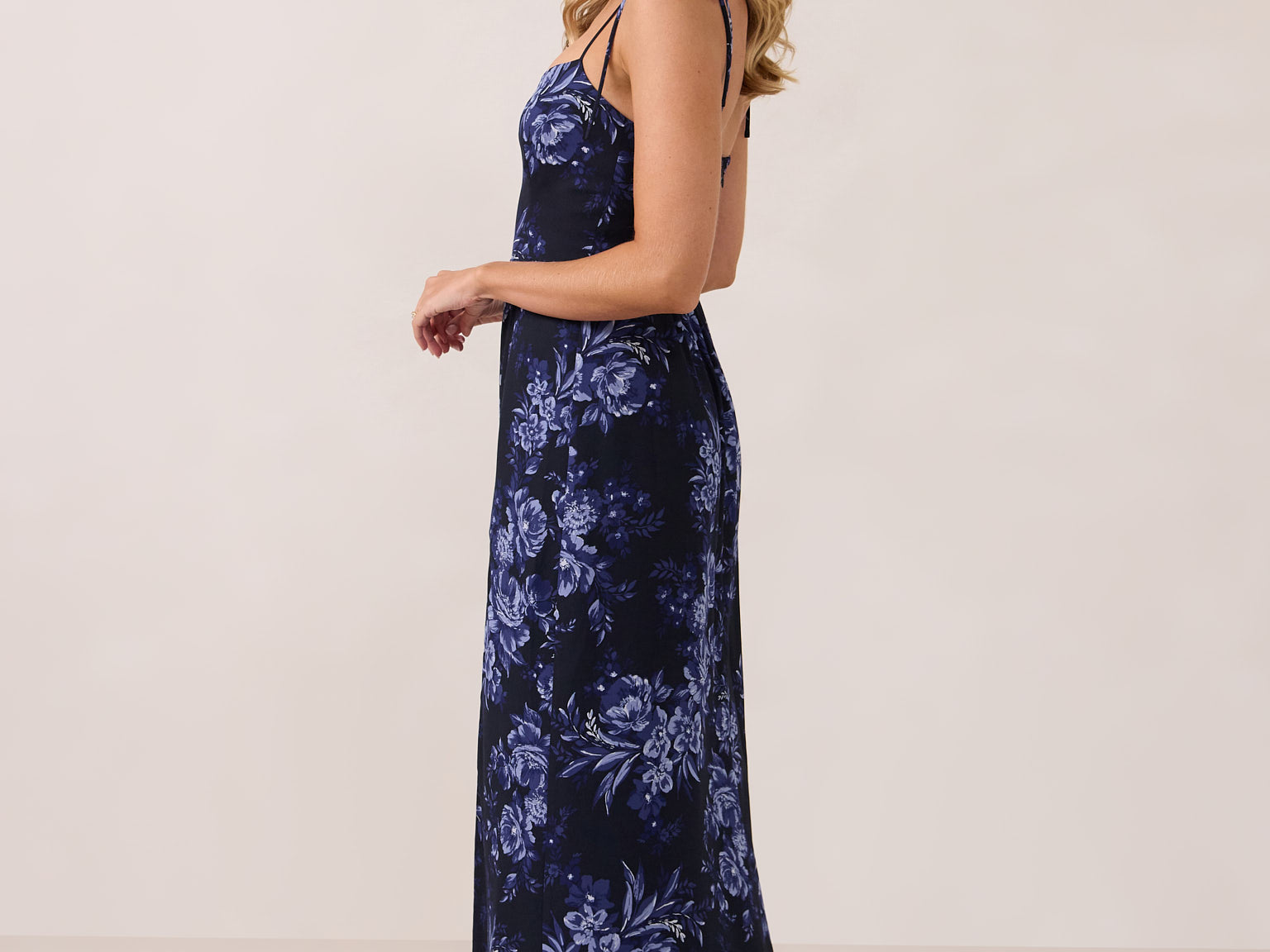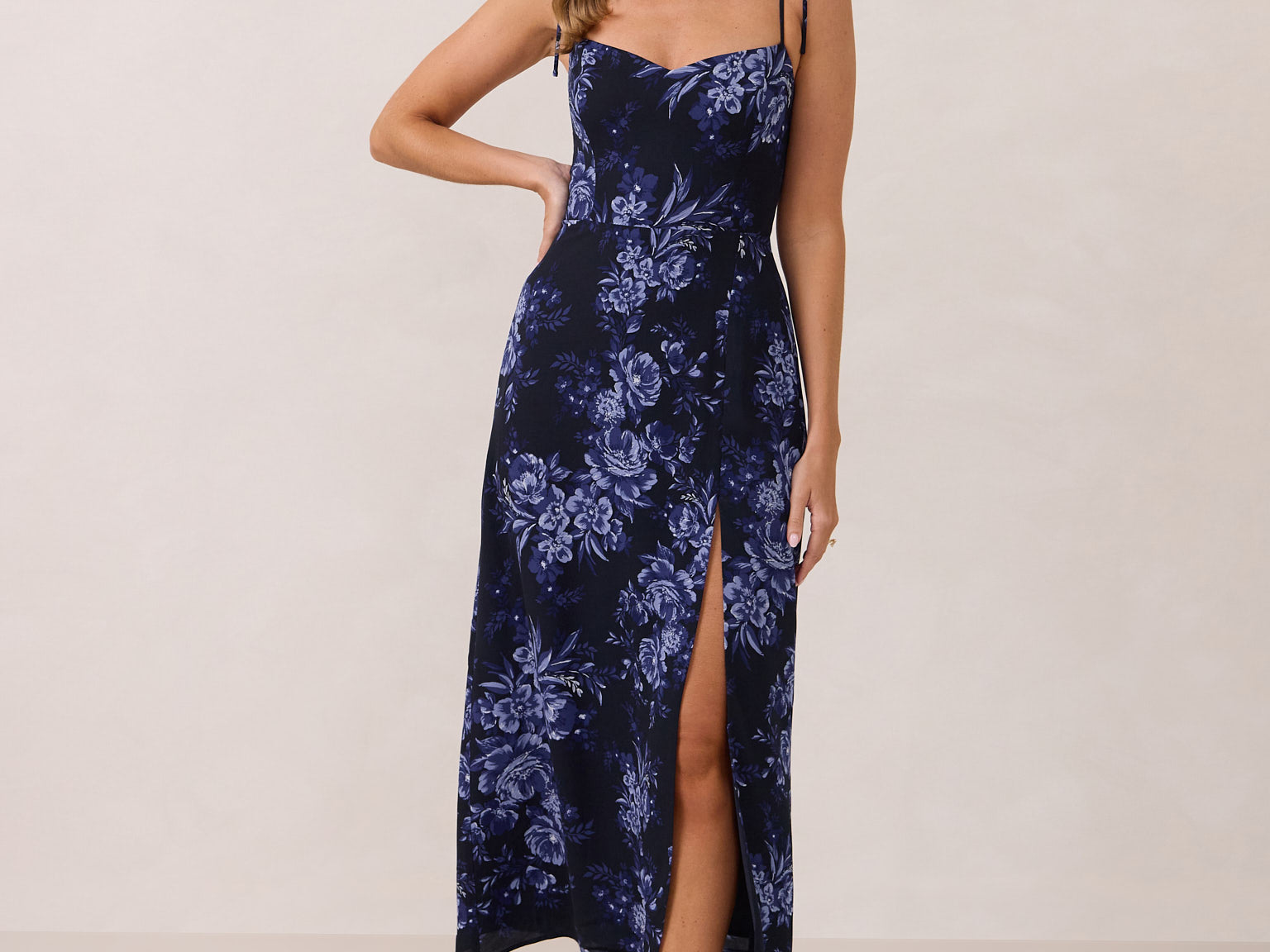 The Willow Dress is effortless and romantic, designed with delicate tie straps. The fitted shape through the waist gives way to a soft, easy fitting skirt, complete with a front slit.