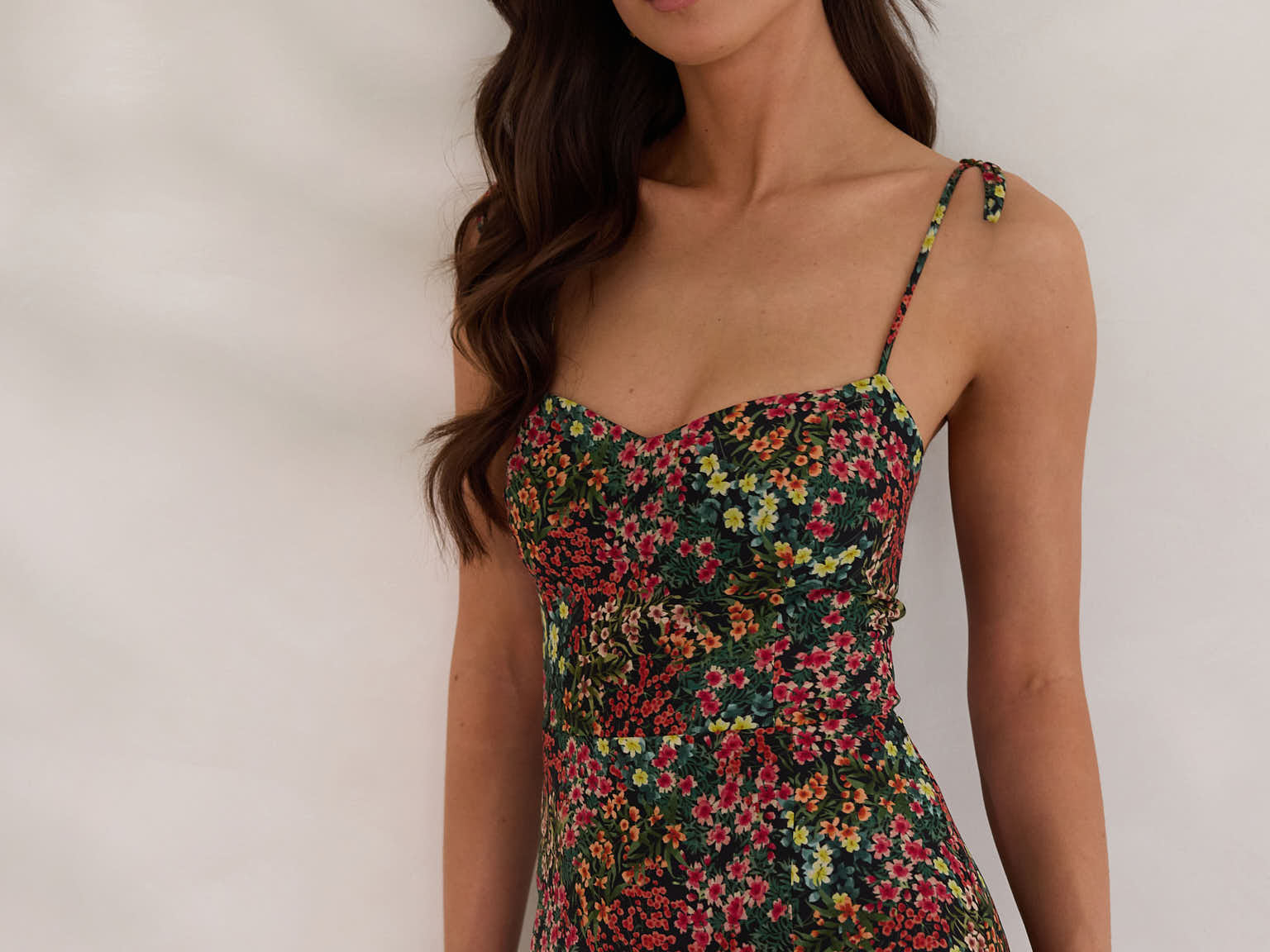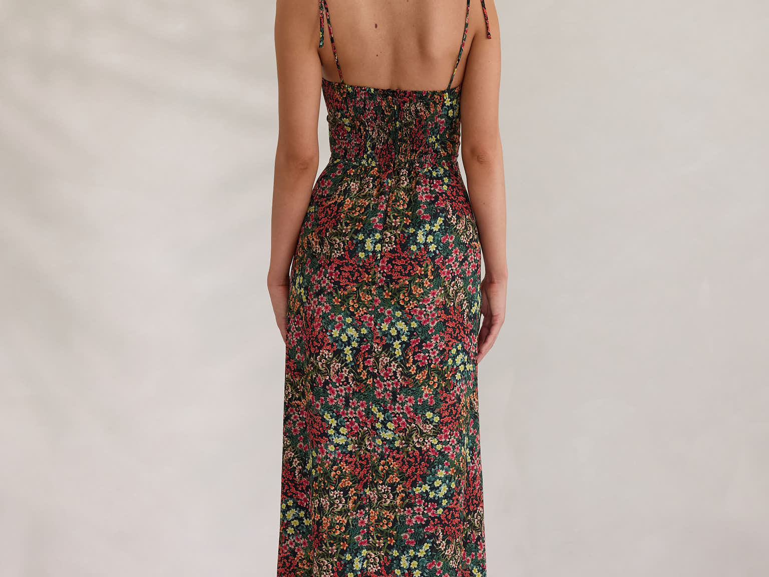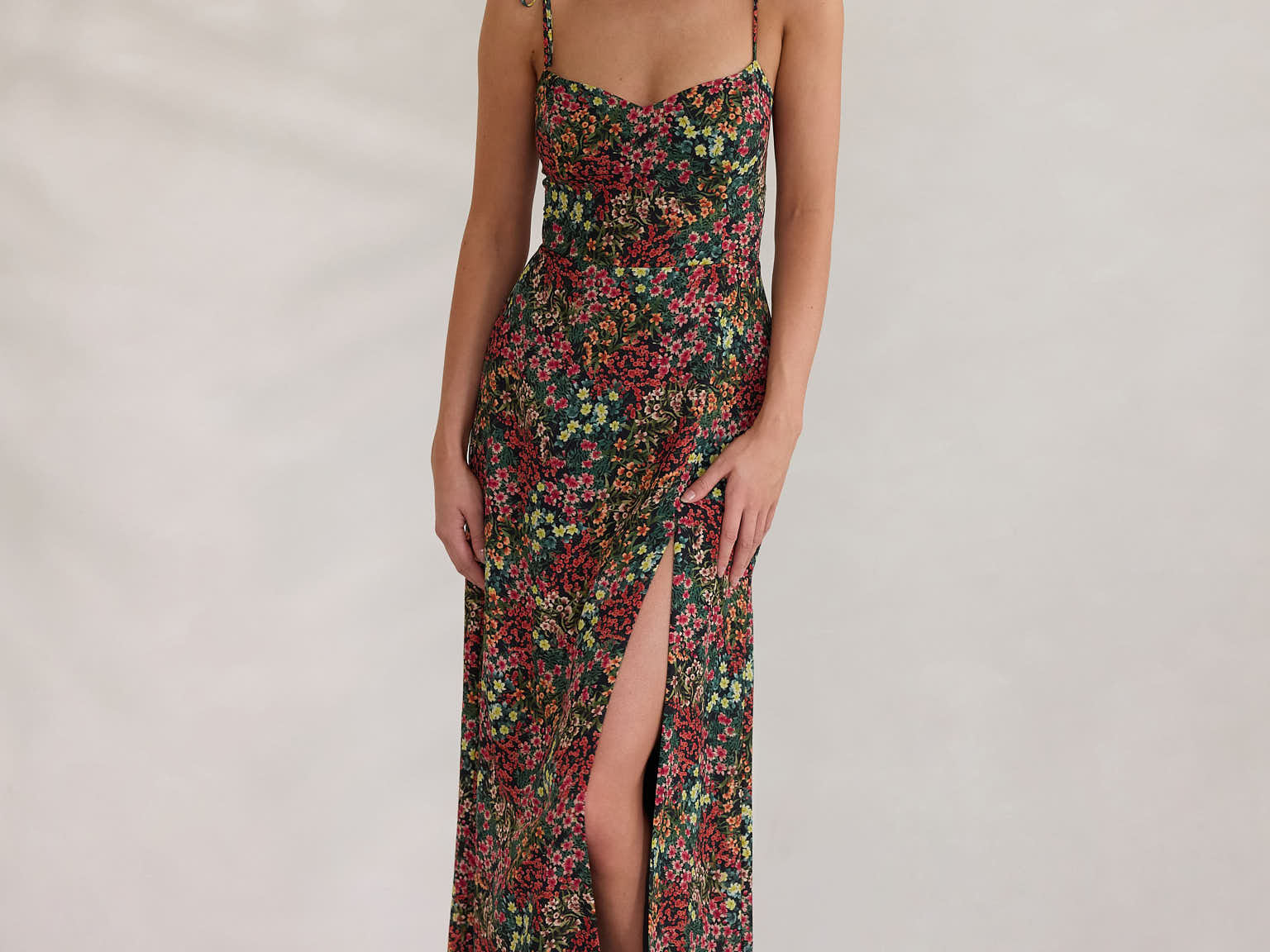 The Willow Dress is effortless and romantic, designed with delicate tie straps. The fitted shape through the waist gives way to a soft, easy fitting skirt, complete with a front slit.